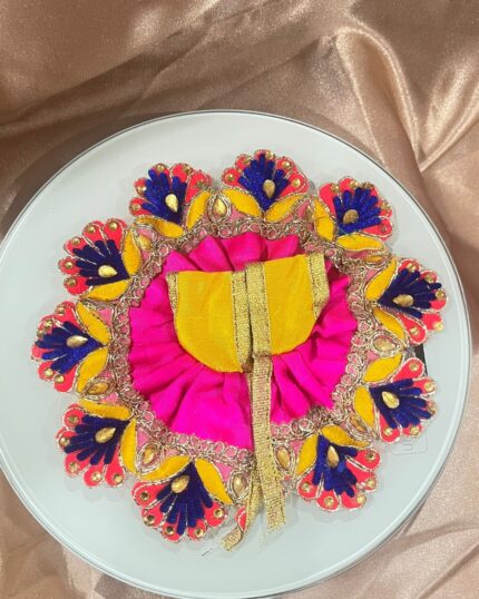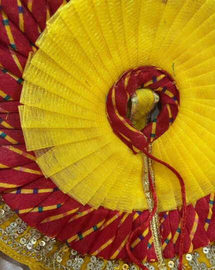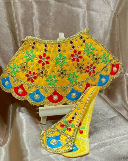 Laddu Gopal Shringar Vastra – Peacock-Inspired Pink & Yellow Dress