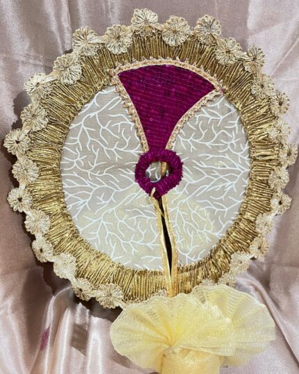 Laddu Gopal Shringar Vastra – Ivory Gold with Magenta